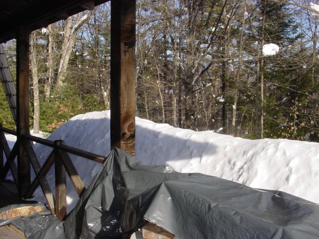 The winter season crused along in January with more snow and a far amount of melting, so our snow pack was not all that big until we got to Late January and February. Then the snow and even some rain and Ice came calling. With more snow and Ice we began to see our snow banks get bigger and bigger and my stepson who does plowing for the neighbor who plows driveways and camp roads had to use a bobcat loader to move the snow banks back so the driveway would stay open. Next we got a mini Ice storm in early February. This storm was an awful reminder of the great Ice storm of 1998, just tens years ago in which we lost power for 9 days plus. During this storm we lost power for about 40 hours and now have a backup generator that filled the bill, living was not so hard with the generator, we could shower and had heat and the frig was able to run. Snow really started to pile up in late February with about two storms a week and this pattern is still going on as I write this. We may get another Ice storm this coming Wed. Over the last week we have received 20+ inches more now and we surely needed to shovel the poarch roof several times in the last weekend. I must have shoveled that poarch roof 4 or 5 times this winter and there still a lot of snow on it. Please take a look at the slide show I will post at the bottom here or go to my "Winter/Christmas 2007/2008" album and take a look at the snow.UPDATE: March 5, 2008 8:30am
