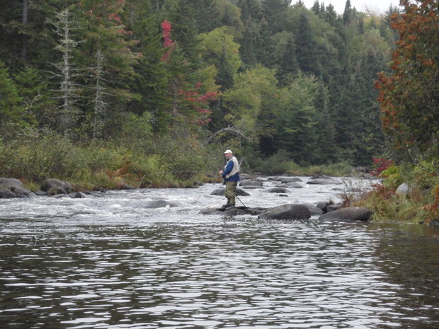 My clients started fishing the lower river and managed to land a couple of salmon and experienced several hits by large brookies but were not able to bring them in. One of my favorite spots is Drinkwater's Bath, supposedly the spot where the English poet fell off a rock while taking a breather some time around the early part of the 20th century.....good story anyway.