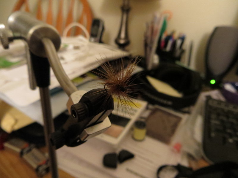 The trickto these particular type of wings is to tie in the tip of a feather like one wing and cut off the feather and then separate the tip to make two wings. I was essentially making tails where the wings go and they were too sparse that way.