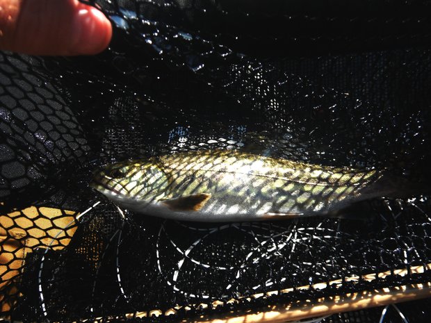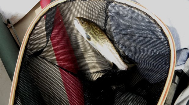 I suited up and we headed out, in just a matter of minutes I had a nice tiger on the line. As I was making my way over to show off my catch, TBone had a fish on, I nice little Tiger Trout (Goal #2 complete).