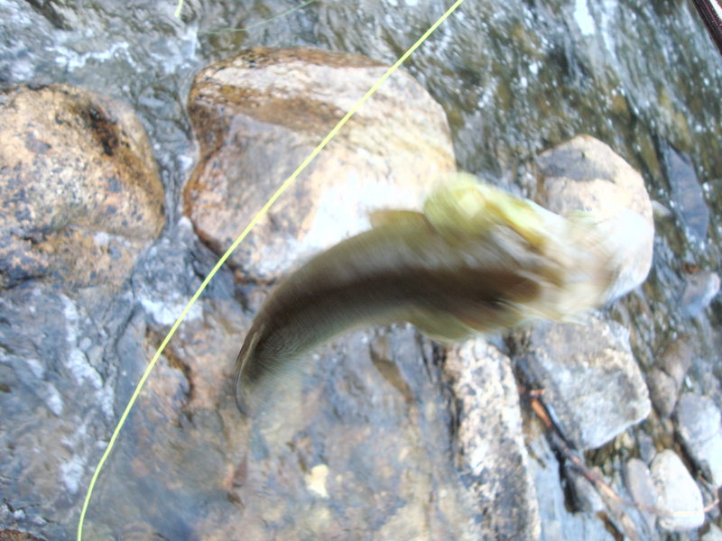 So we headed up river to some rapids, and Chance had tied on a stimulator I tied and had hung on my bag he was using.  He seemed to like the dry fly because he could see it.