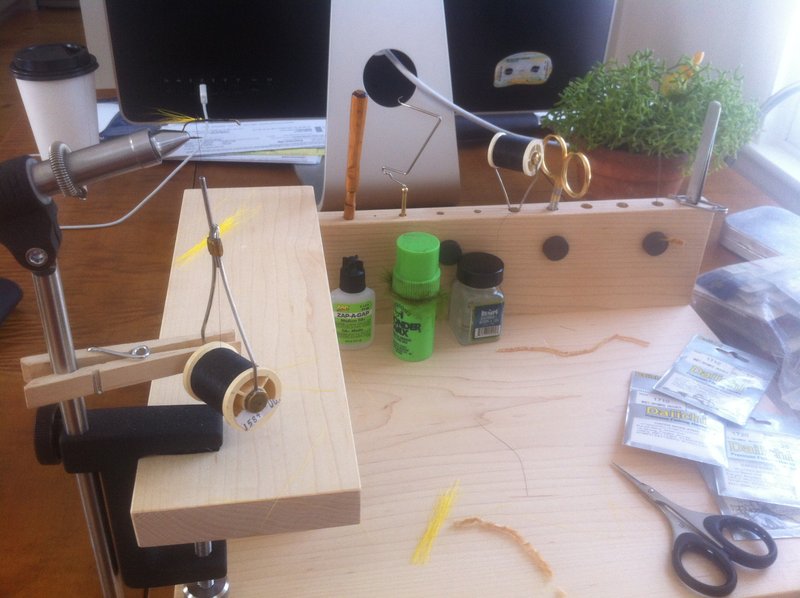 Someday I'd like a dedicated spot for the tying stuff, too.  Right now the only likely spot in our house is in the room farthest from the wood stove and it's pretty cold in there.  I had appropriated Jack's tying bench that we made last year, then he re-appropriated it last week so I was forced to go back to my old one or make the new one.  Hope your desk doesn't have a similar fate.