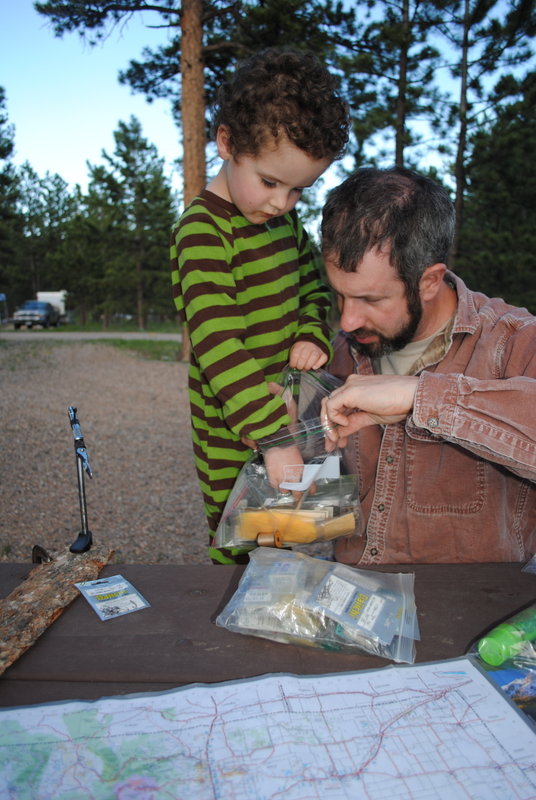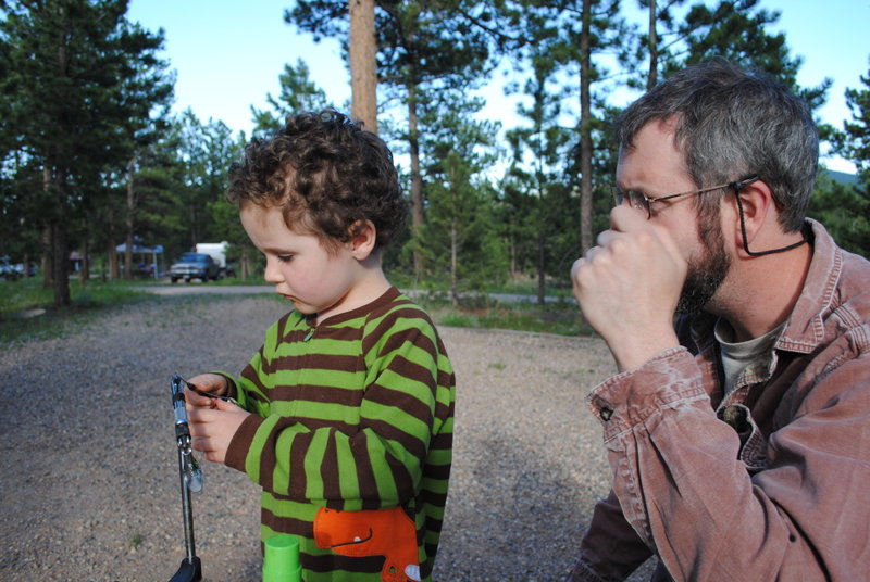 Tried resizing these to 550w.  Not sure if I was able to get the URL thing on the insert image right.  Here are Jack and I putting together a few flies at a campground in Colorado near the Cache La Poudre river in Colorado.  I've usually brought stuff along on trips because I didn't know what I would need and was too lazy to tie ahead of time.