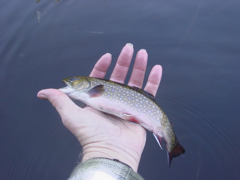 me when I was getting into my boots and came down to the pond later.  Very nice young man and tribute to the CO service in NH.  Things were slow until around 8:30am when the sun was a little higher in the sky.  Now fish started to rise but were just a little out of reach but I did manage a couple of fish.  I then moved around the end