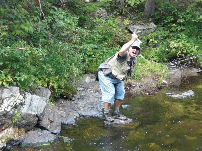 The North Branch of the Sevogle is a small to medium sized river, shallow runs with fairly deep pools. River is very rocky with steep sides and a good riparian strip.  I tried to put some pics that showed the size of the river Lee. And ofcourse I couldn't resist putting a picture of my fishing buddy Laurie with his knife out ready to jump into a pool and attack something. He's always messing around, you know kissing fish etc.
