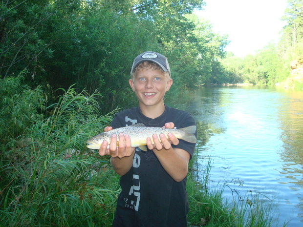 Dave, Nice looking brown!  It's good to see the next generation getting started in the outdoors!  Thanks for sharing a report from the Dakotas, I've been out there once on my way to and from Yellowstone.  Nice country, I really enjoyed the scenery across both states.