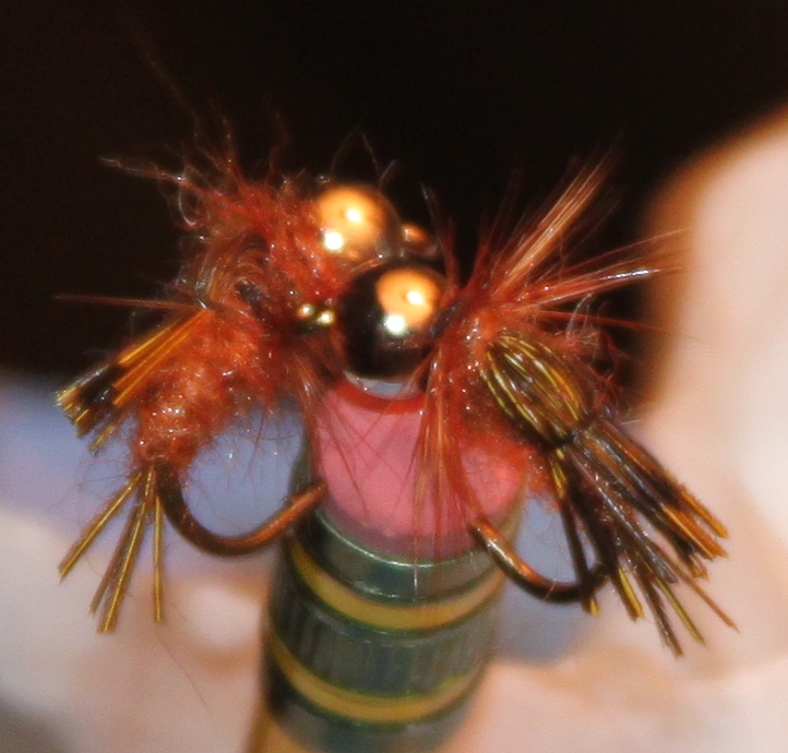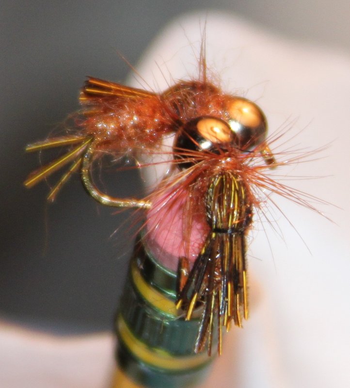 I enjoy tieing these i was looking on you tube one day for a smallie fly and came across this one its actually designed for carp but smallies and i am guessing trout will enjoy it . i did test it out on some smallies not long ago and it was a sucsess i guess it could be considered a crayfish design too. This fly designed by : Bob Clouser