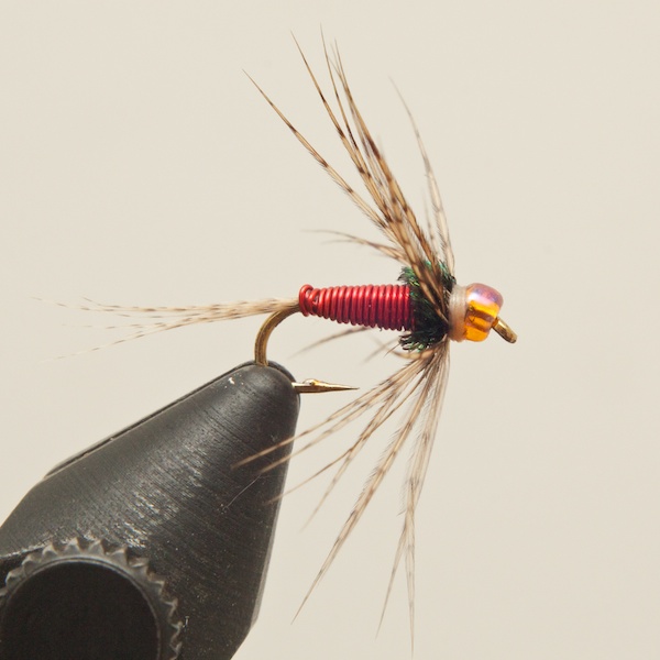Since the recent thread from Theron with copper johns, here is my take on using wire in a nymph. I just started tying these this season, tried them in red and yellowish/green.  Caught fish on both.  This one is tied with hungarian partridge, but I've also had good luck with a black soft hackle collar as well.  Thorax is tied with Peacock sword (not herl).  This one has a glass bead, just because I've got them, need to use them for something.  But I"ve also tied them with bead heads, and no bead at all.  they all work and a simpler fly to tie than the copper john.  I suppose if you wanted to hybrid a bit you could try biot for the tail and keep the rest the same as well.
