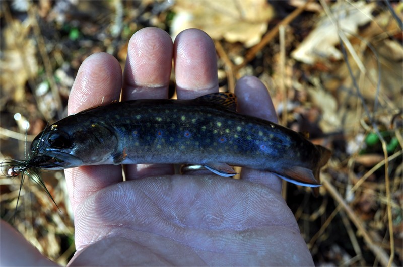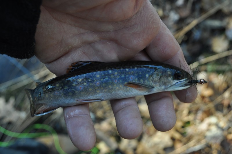 Got up early this morning and decided i would take my fishing rod for a walk on my birthday . Seeing i just moved near a old but new to me river, that happens to be open year round in the section i live near. i head up the street about 10 min walk to the spot i decided to check out on the way i see some great sign of the rut going on in the deer woods big old scrape in the trail along edge of river nice to see guess i don't have to go too far to find the deer as well . any ways i tie on wooly buger and scud type fly and start drifting it threw the ripples had couple of hits ? hmmm at 1st just thought i was getting hooked on the bottom but come to find out i happened to find a nice little pod of wild brook trout all about 6-8" i eneded up hooking a few landing 2. I moved down threw the strech to find only a few taps fished for 3 hours nice mornig heres a pic or two of the beautiful little wild fish that happen to live in the big river across the street not what i was expecting to catch i was hoping for a bow or two but a fish is a fish and def the latest in the season i have ever landed any fish on a flyrod